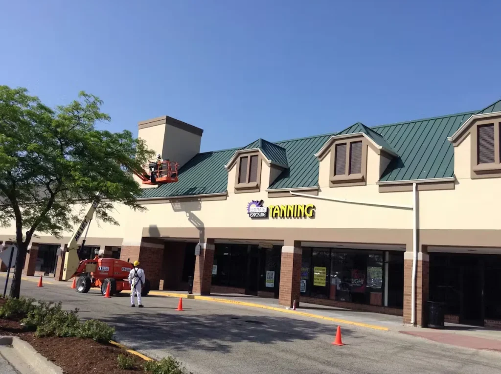 Over time, the existing coating on the metal roof had deteriorated and needed a refresh to not only maintain the aesthetic appeal, but also provide ongoing protection to the structure. A commitment to maintaining a pristine appearance for their customers prompted Ultimate Exposure Tanning Center to reach out once again.
