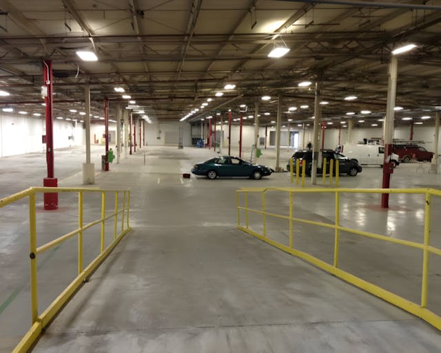 - Surface Preparation: Extensive prep work including removing floor bolts, repairing unusual cracks, filling holes, slurrying spalled areas and degreasing.